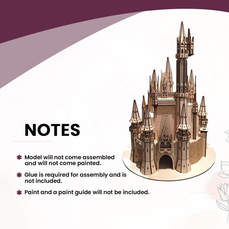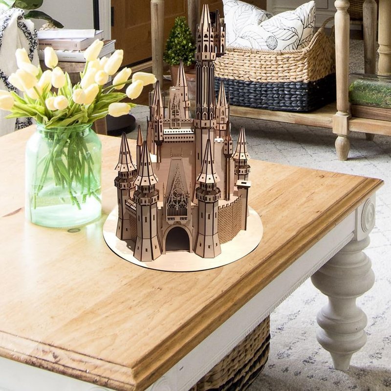 - BUILD THE PRINCESS CINDERELLA'S CASTKE: 3D wooden model based on the popular castle at Walt Disney World. The pieces are made of Baltic Birch plywood carved out on a laser machine on a 1/8" sheet which gives a mooth appearance and make it strong and sturdy.