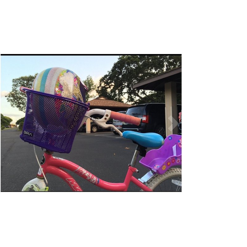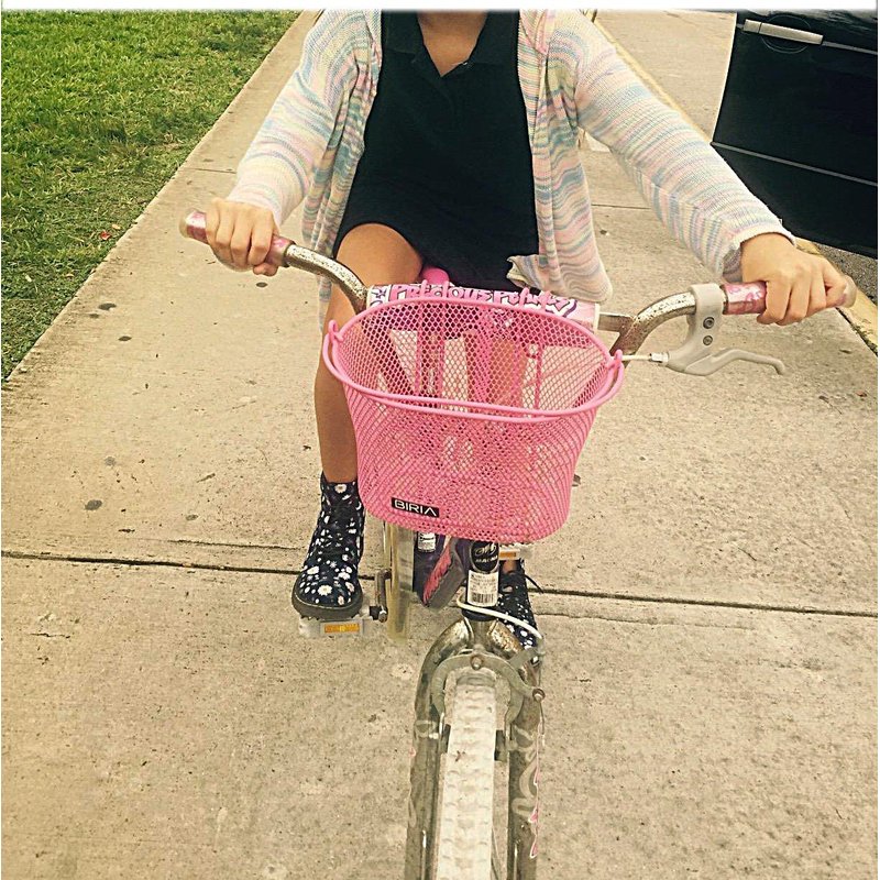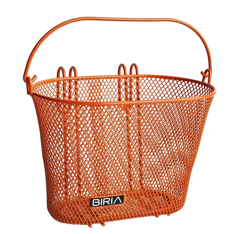 This is a sturdy wire mesh CHILDREN basket with hooks. THE DISTANCE BETWEEN THE HOOKS IS 3 ⅛ INCHES OR 8CM PLEASE NOTE this is a SMALL basket This basket has measurements of: (L x W x H) 10.5" x 7" x 6.5 Color: Orange. Easy to put on with swing up handle. Finely woven plastic coated basket. Bicycle basket Best Kids Bike Baskets, Rated 4/5/2021, by Two Wheeling Tots Why we love it While Biria makes a variety of bike baskets, these particular baskets are smaller to better fit on kids bikes. Available in a variety of bright colors for boys and girls, some options also come with playful emoji decals. We also love that they have a handle for use off the bike as well.