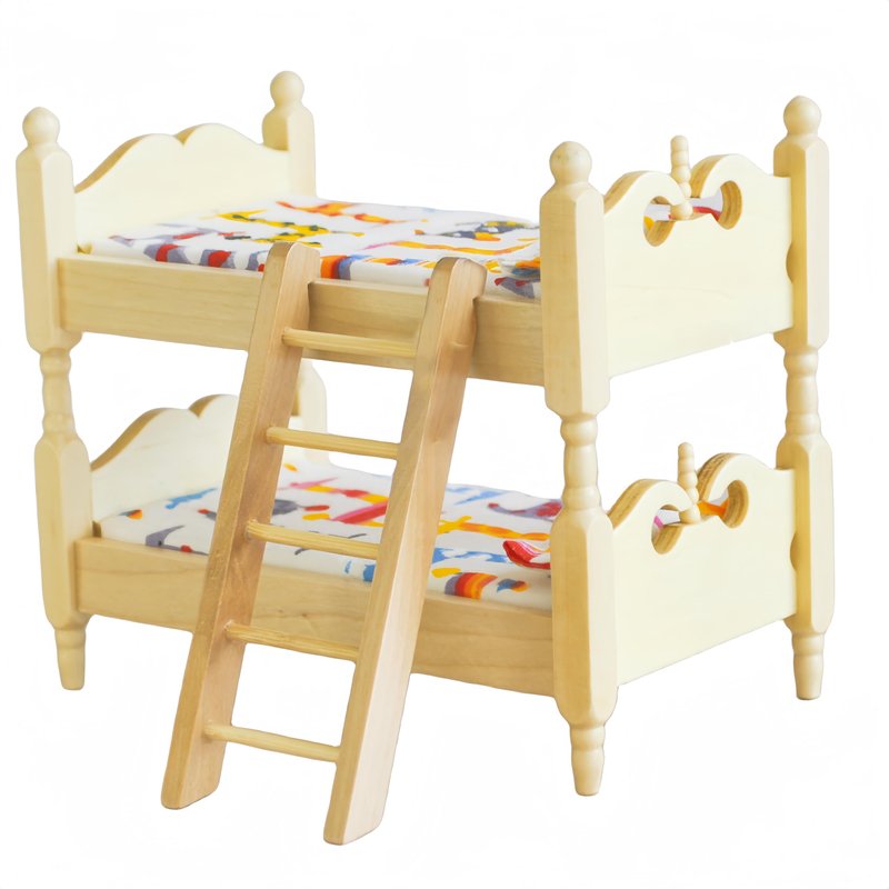 Birostiana Miniature Dollhouse Accessories Miniatures Furniture Wood Bunk Bed Mini Toys DIY Decor Ornament fo Dollhouse Bedroom Party Kit