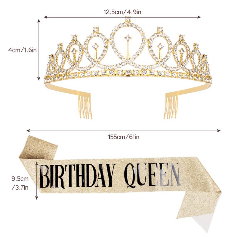 - BIRTHDAY QUEEN Sash + Rhinestone Tiara Gifts Set.Every girl deserves to feel like a princess/queen on her important occasion. It will make your dream come true.
