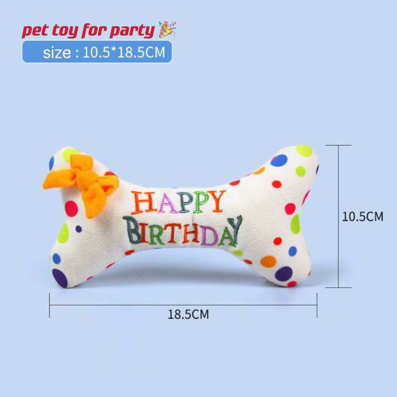 - Birthday Cake & Bone Squeaky Dog Toys with Soft Stuffing Celebrate your pet's birthday with a delicious slices of dog-approved cake & bone.