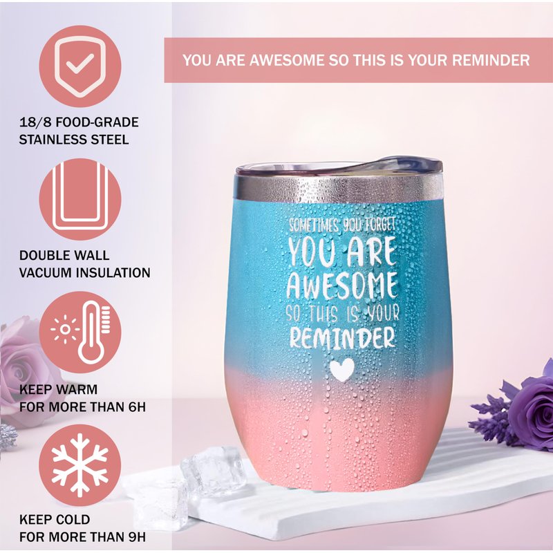 - Personalized Gifts Box: Make her feel awesome with a personalized wine tumbler featuring the quote "YOU ARE AWESOME" to celebrate her birthday. Let her enjoy her favorite beverages and relaxing bath time with our rose-scented products, making her birthday experience truly special.