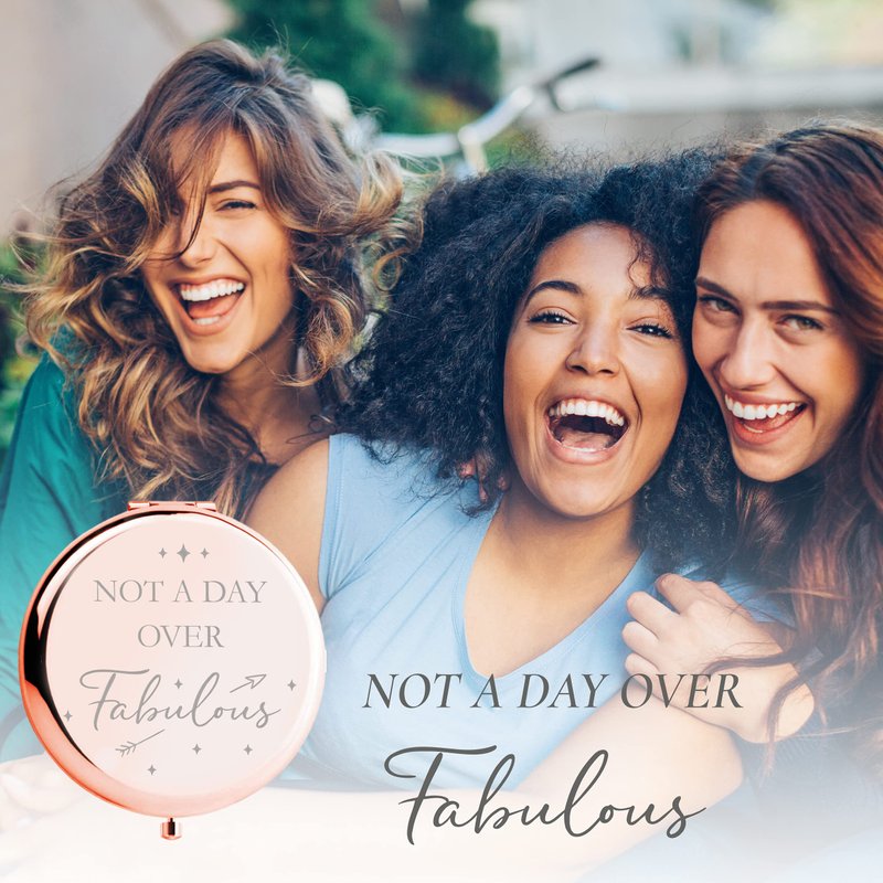 - What You’ll Receive: 1 x gorgeous rose gold compact mirror, delicately etched with “Not a day over Fabulous”. Wrapped in a beautiful marble gift box. It’s the ready to present birthday gift for women.