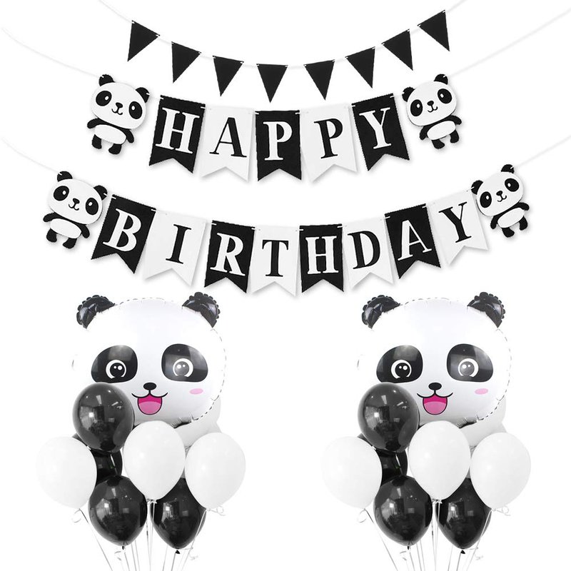 - ❤A set of birthday party decorations supplies includes 1 felt HAPPY BIRTHDAY panda banner,1 triangle flag banner,2 cute panda aluminum foil balloons,10 white and 10 black latex balloons.