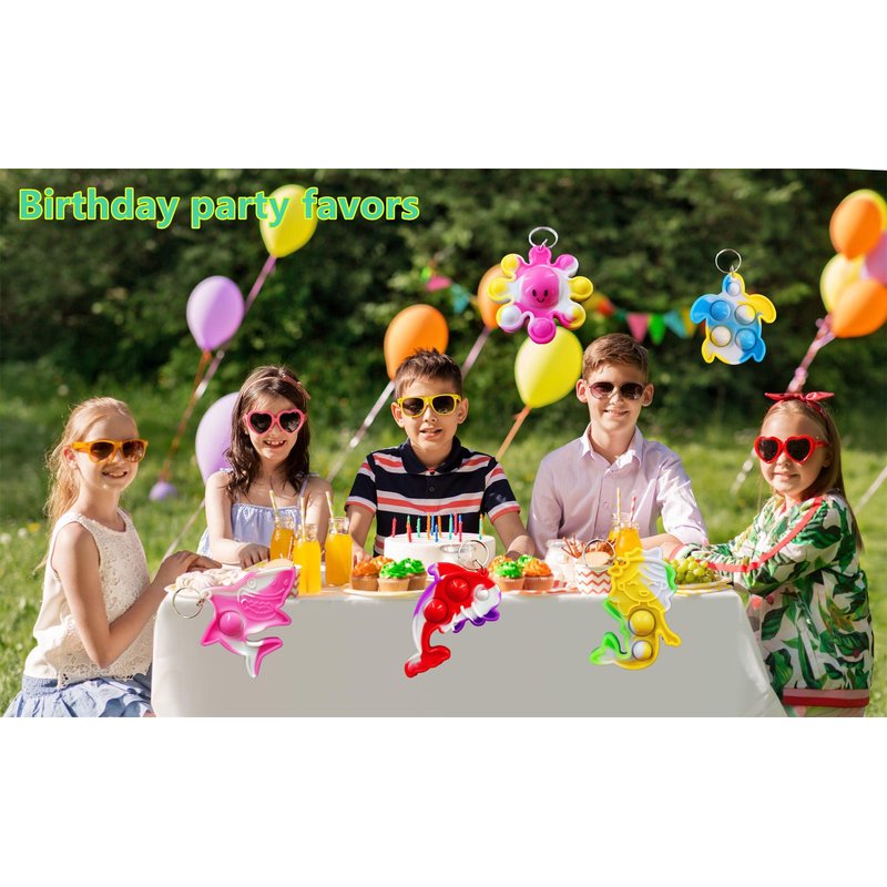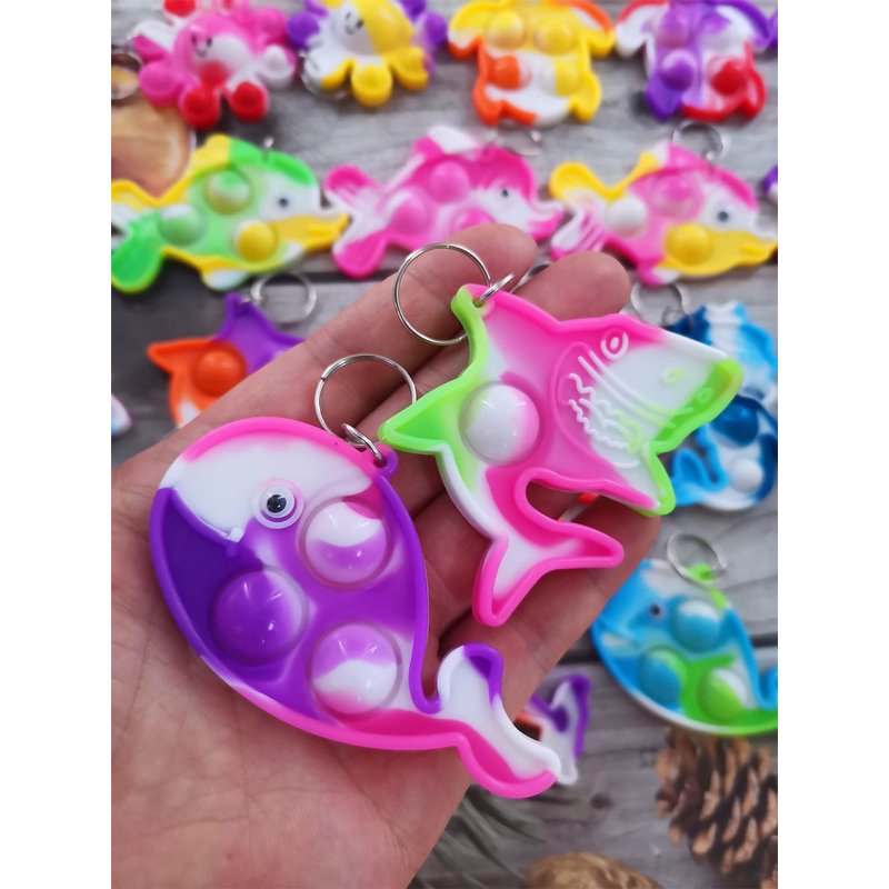 - 2,Made of silicone,package included:100 pcs (Octopus, mermaid, turtle, shark, whale, fish, dolphin)shape mini pop key chains,Random color to send