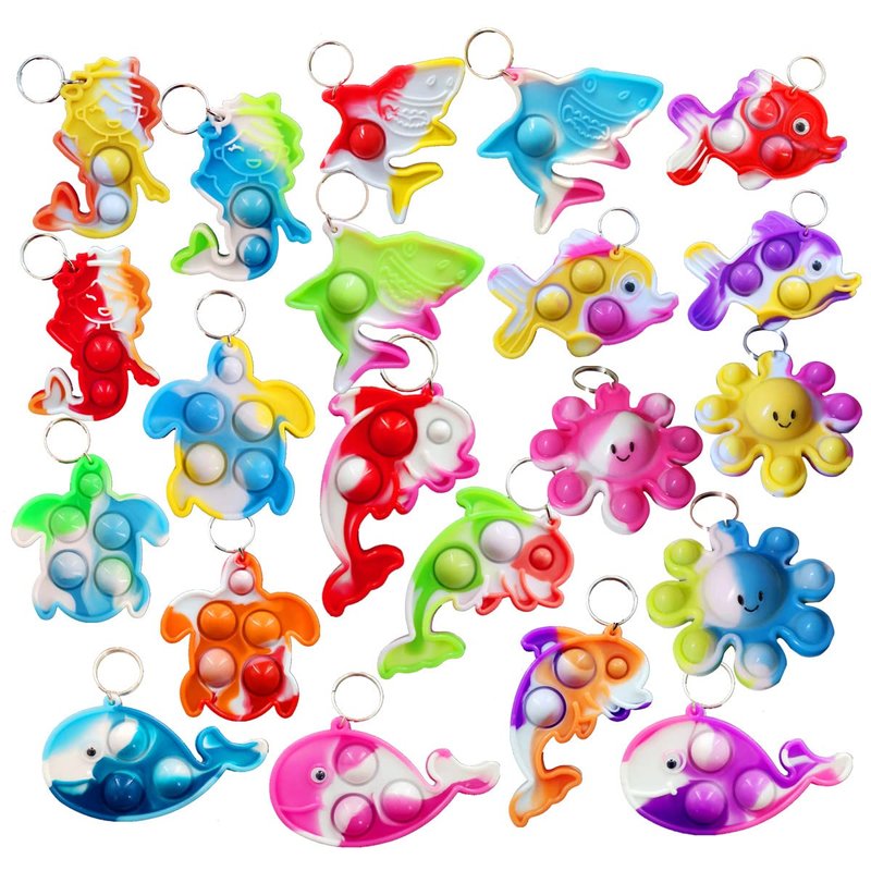 (Birthday Party Favors)100 Packs Bulk Ocean Animal Fidget Mini pop Keychain Rainbow Sensory Push Toy for Friend Halloween Party Favors Children Kids Students Prize Gift