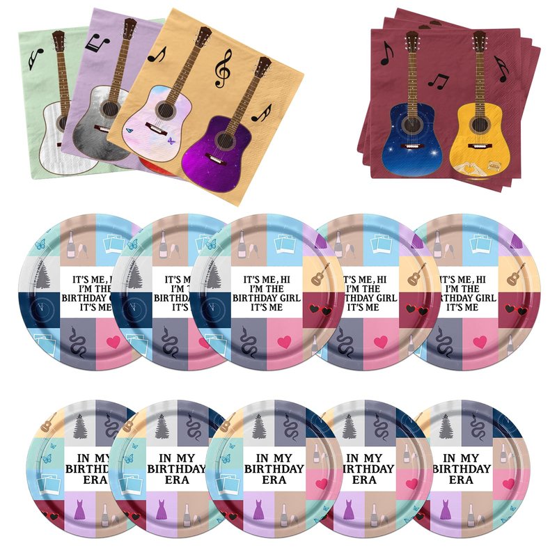 - WHAT YOU CAN GET:Do you want to have an impressive theme party?Look here!The Female tableware include 40pcs 7inch in my era plates and 20pcs music guitar napkins