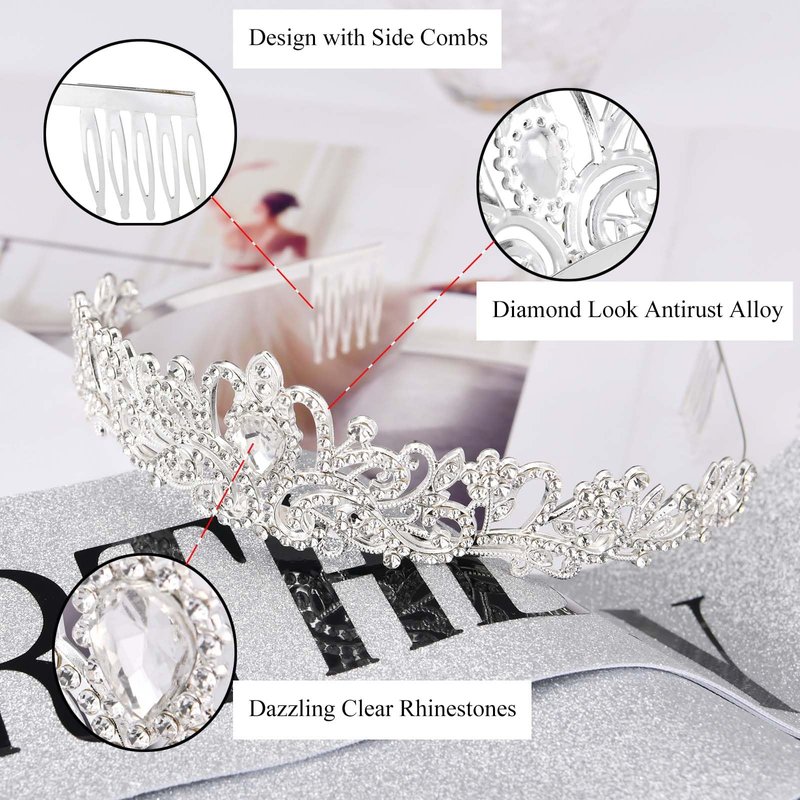 - Durable Materials: The tiara is made of high-quality hard alloy and perfect rhinestones, which ensure durability and a diamond-like shine. Two combs on either end of the tiara provide a secure grip on hair.