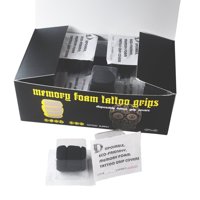 BISIBITA2 Tattoo Grip Cover, SUP Memory Foam Cover for Any 1 Inch Tattoo Tube Grips, 20 Pieces, Black