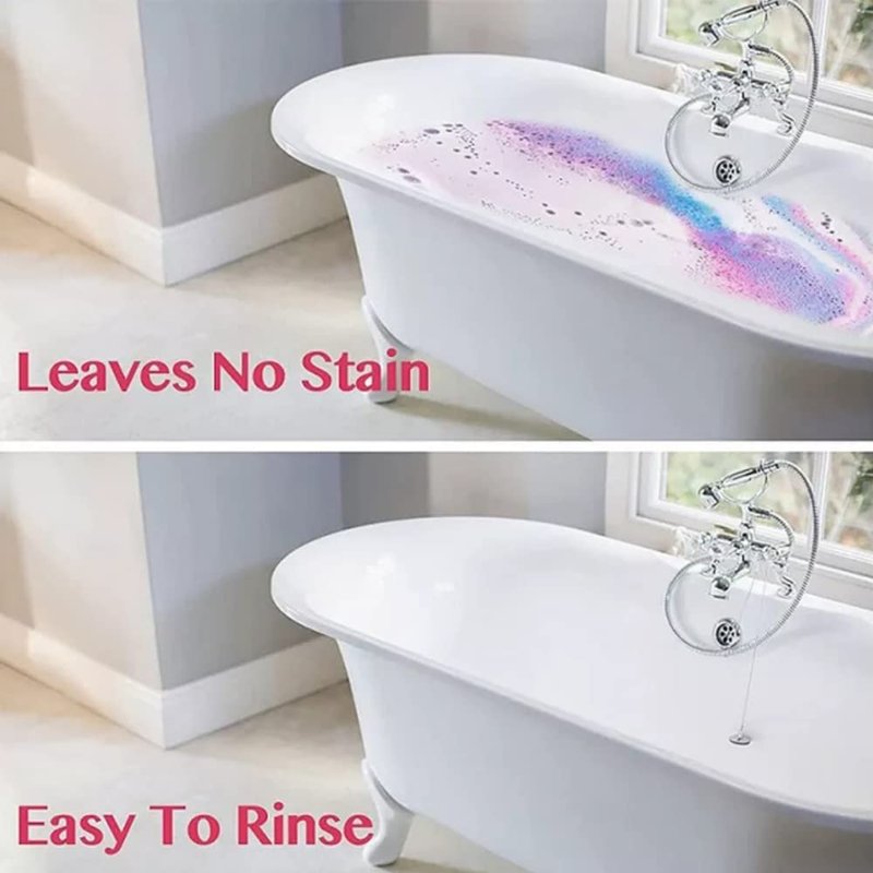 NO RESIDUE Our bath bombs can be dissolved easily. No coloring will stain your skin nor your tub. You can easily clean your tub after bathing.