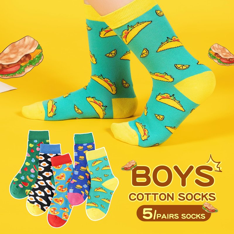 - 🌮🥪🧀【Economical Cartoon Crazy Socks】Every kid needs these cute cool silly socks, which can be wore in all seasons. Kids can wear these fun socks as Dress Socks, School Uniform Socks, Sneaker Socks, Running Socks, Daily Trouser Socks, Party Socks, Halloween Socks, Christmas Socks...