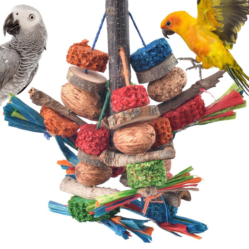 - PARROT FORAGING TOYS: Every bird is a chew person. In their native habitat, they are engaged in burrowing and tearing branches, so it is important that we keep something for them to chew. Our natural wooden toys are sturdy and sturdy, satisfying the natural chewing behavior of birds and grooming their beaks