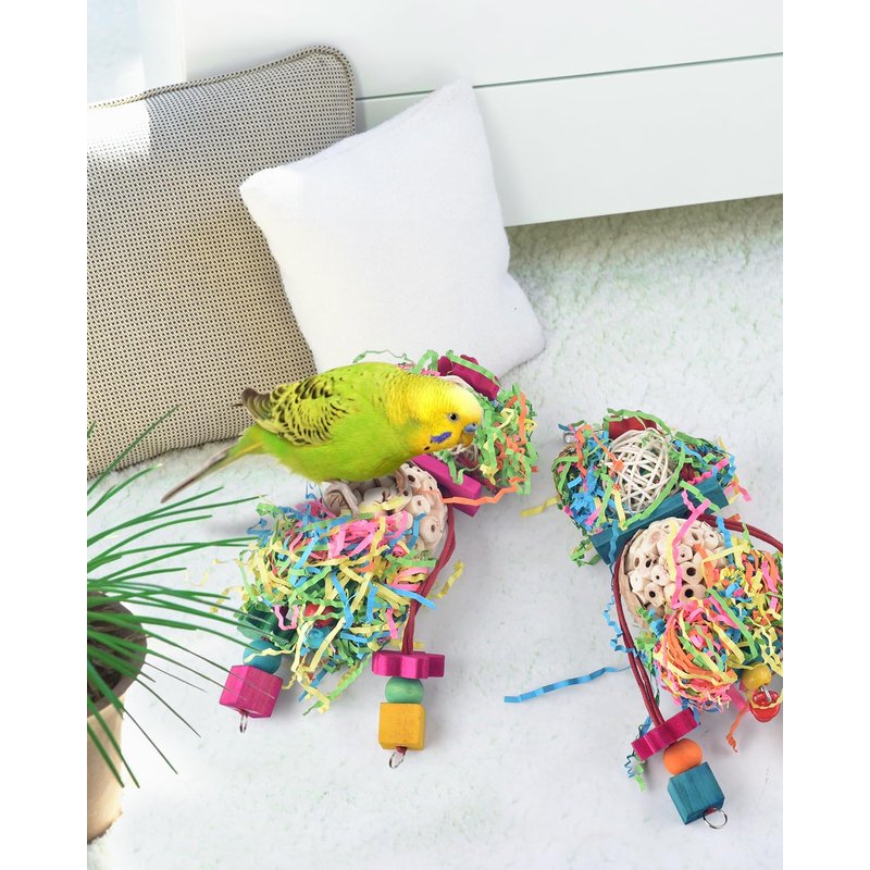- Stay Healthy: Chewing and shredding are natural behaviors related to foraging bird food and nesting. It effectively helps parrots improve their mental state without suffering from mental disorders such as depression or even pulling out due to long-term inactivity All feathers, letting the bird's mind participate in it is the key to prevent boring related behaviors, and it can also promote the bird's physical and mental health