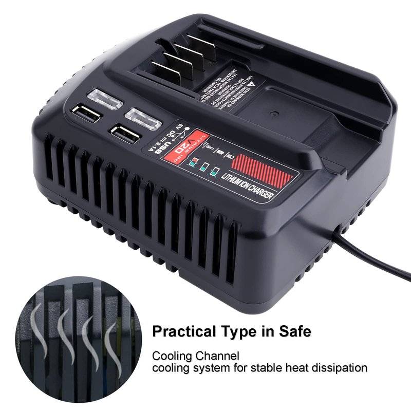 Biswaye Replacement for Craftsman Battery Charger CMCB104, Compatible with Craftsman V20 Series 20V Battery CMCB204 CMCB202 CMCB201 Power Tool Battery Charger, V20 Charger with 2 USB Ports