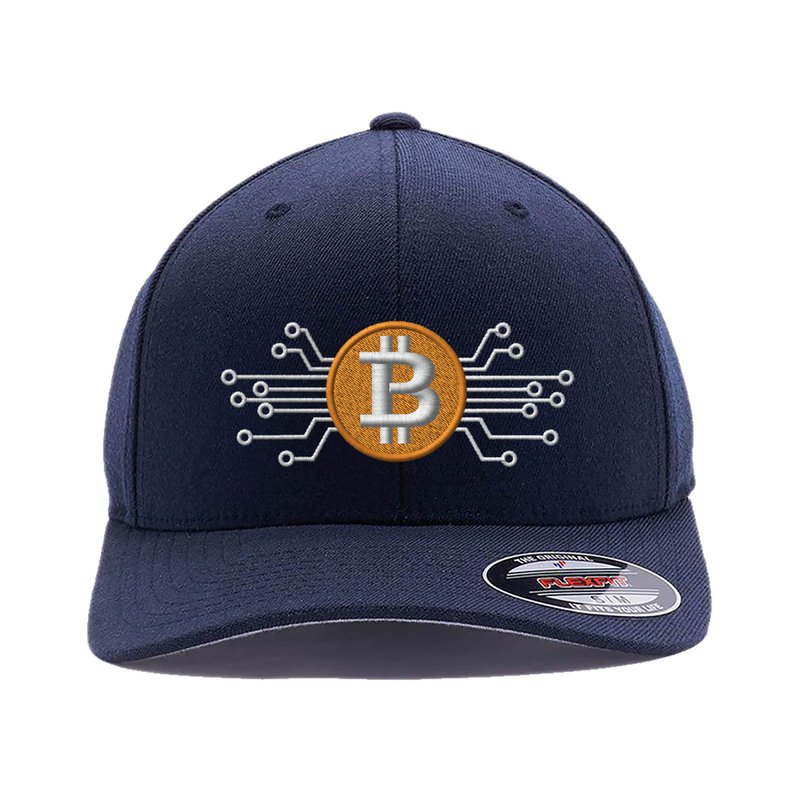 - Custom Embroidered Bitcoin, Digital Currency logo embroidered Flexfit Cap