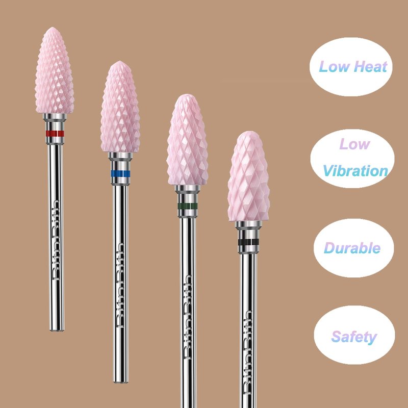 - Flame Nail Drill Bit: This professional nail bit is made of great ceramic material, high strength and hard wearing, durable, sharp with excellent heat dissipation and little vibration,less dust, and crafted delicately. This bit won't overheat during long time use.