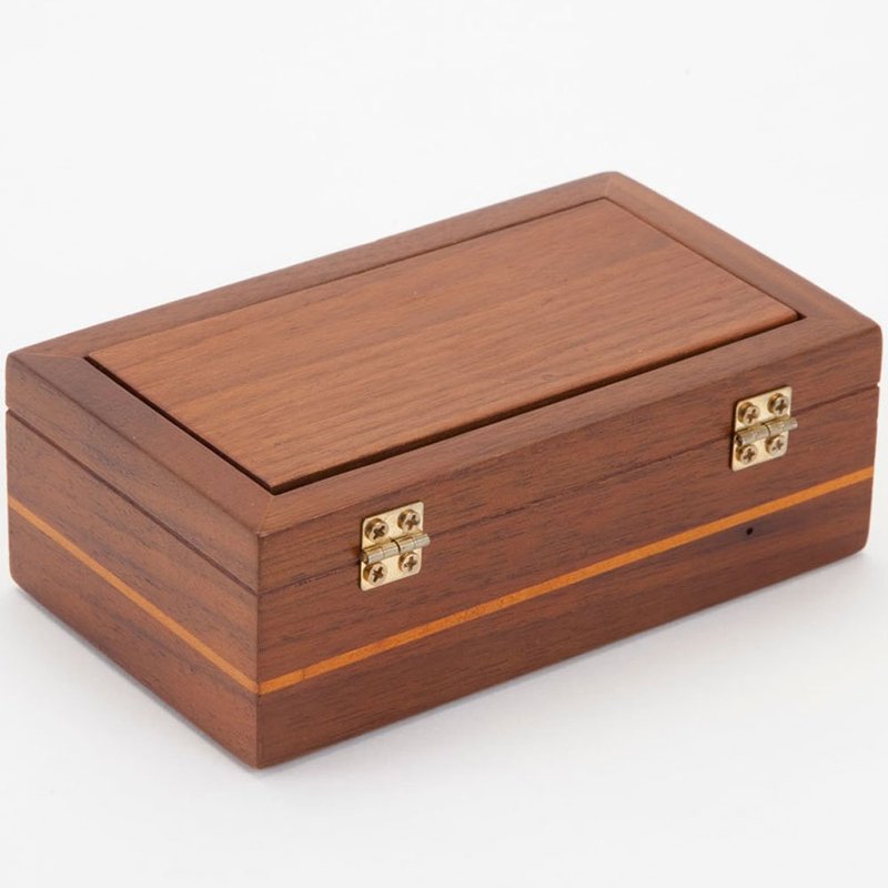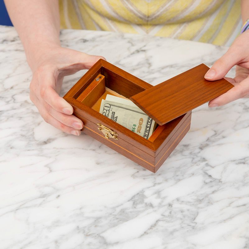 - This stylish wooden box looks easy enough to open, but lift the brass hinge and you will find it's much more tricky than you think to access the chamber within.