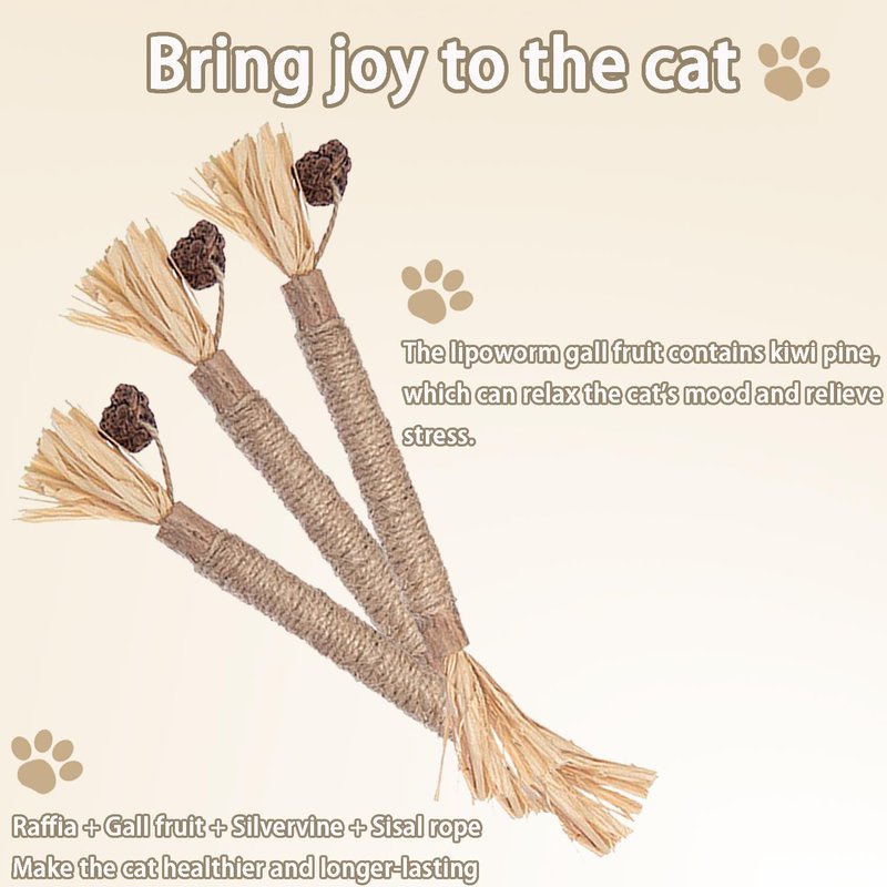 Biunnru Silvervine Cat Toy for Dental Care, Chewing, and Interactive Play Teeth Cleaning and Fresh Breath Toy for Indoor Outdoor Cats (3Pcs)