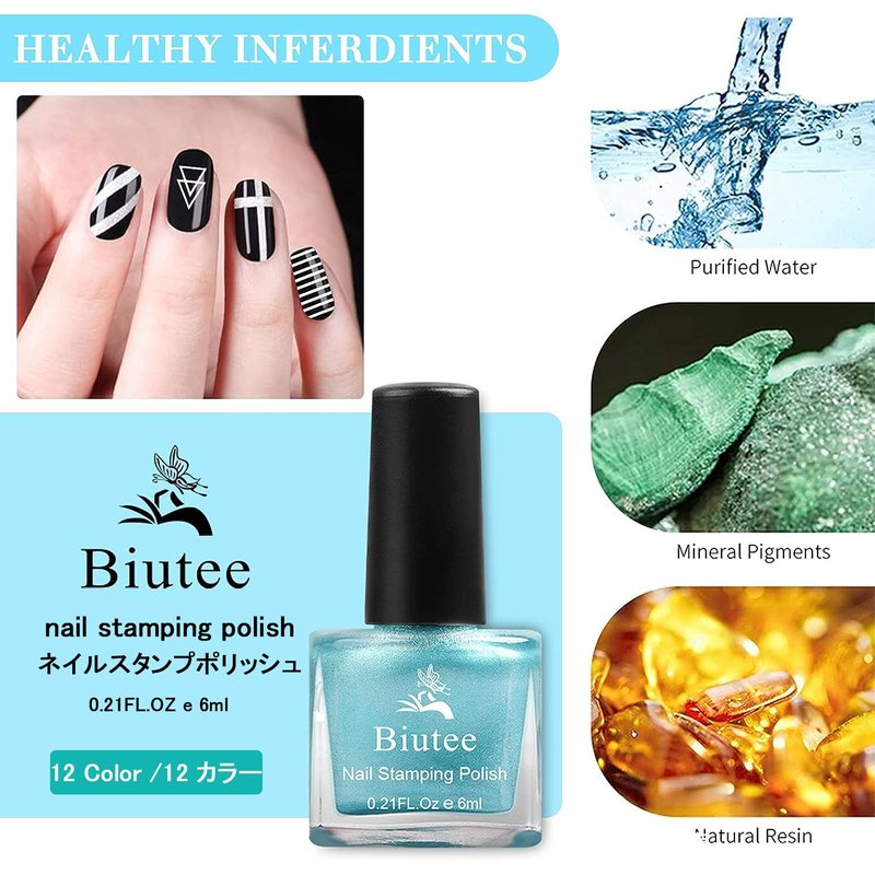 Biutee Nail Stamping Polish 12 Colors 6ML Air dry Special Polish Manicure Print Nail Polish for Stamping Plates Solid Color Nail Polish gift box Nail Varnish Lacquer Nail Art Stamp Gel Polish Set