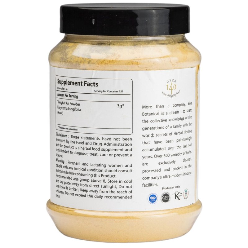 - WHY TONGKAT POWDER: Tongkat Ali (Eurycoma longifolia), a Southeast Asian shrub, is known for its adaptogenic and balancing properties. It supports vitality, strength and stamina, benefiting both men and women. Rich in bioactive compounds like alkaloids, triterpenoids, and quassinoids, it helps balance the endocrine system. In Ayurveda, Tongkat Ali is believed to balance Vata and Pitta doshas. Regular use supports athletic performance,bone density, and overall energy, promoting well-being and endurance.