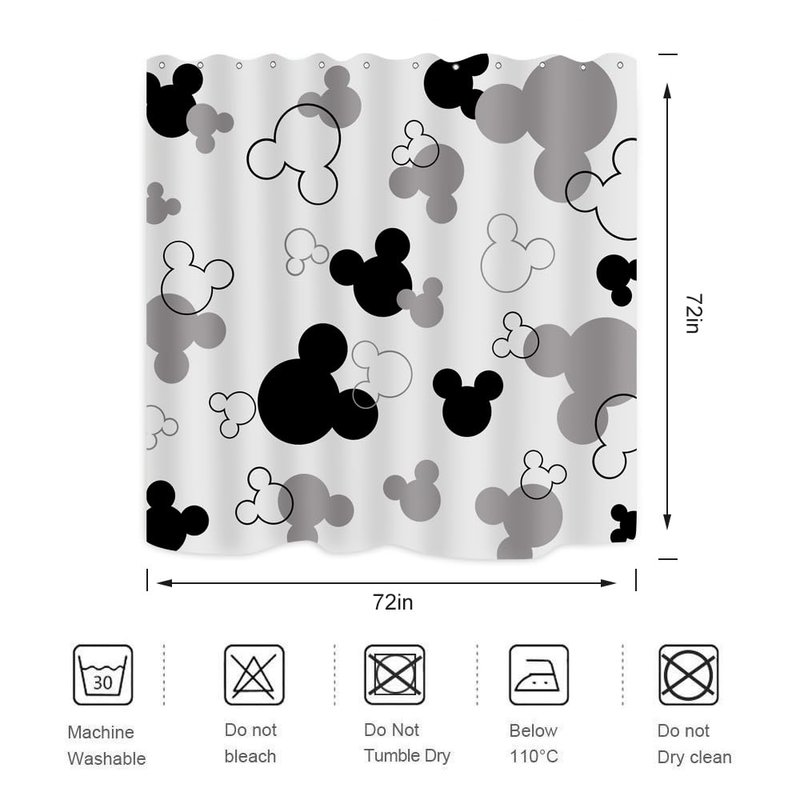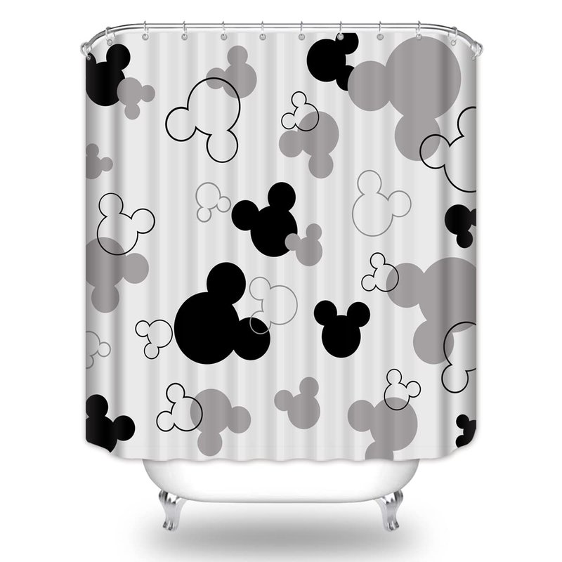 BIYSUC Mouse Head Shower Curtain Black and White Children Cartoons Kids Bath Curtain Cute Animal Grey Bathroom Home Decor Waterproof Polyester Fabric 72Lx72W Inch with 12 Pack Hooks