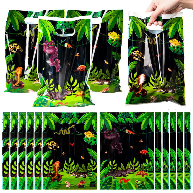 - Reptiles Theme Design: These bags feature eye-catching wildlife designs, including lizards, turtles, snakes, and crocodiles. The vibrant patterns fit perfectly with reptile lizard snake theme birthday parties, adding a festive atmosphere to your event.