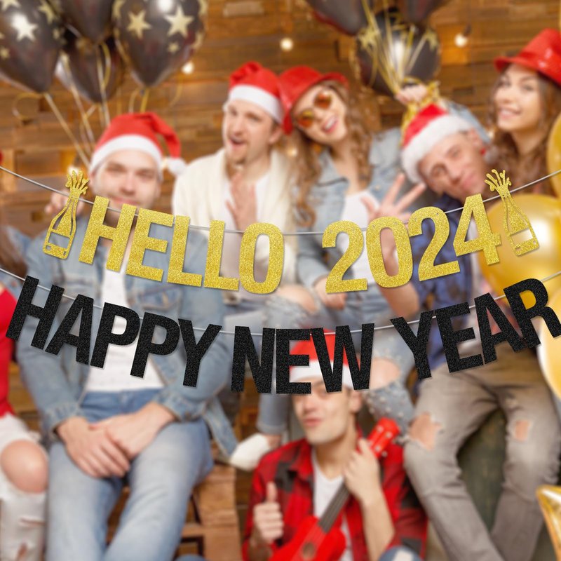 Black And Gold Hello 2024 Happy New Year Banner New Years Eve Party Supplies 2024 Happy New Year Decorations 2024 Happy New Years Eve Party Decorations