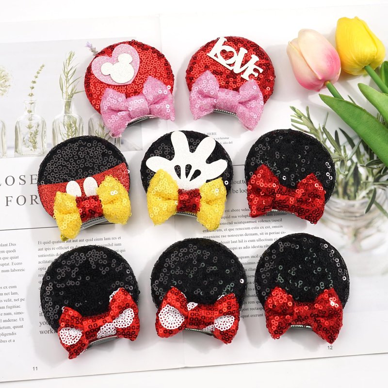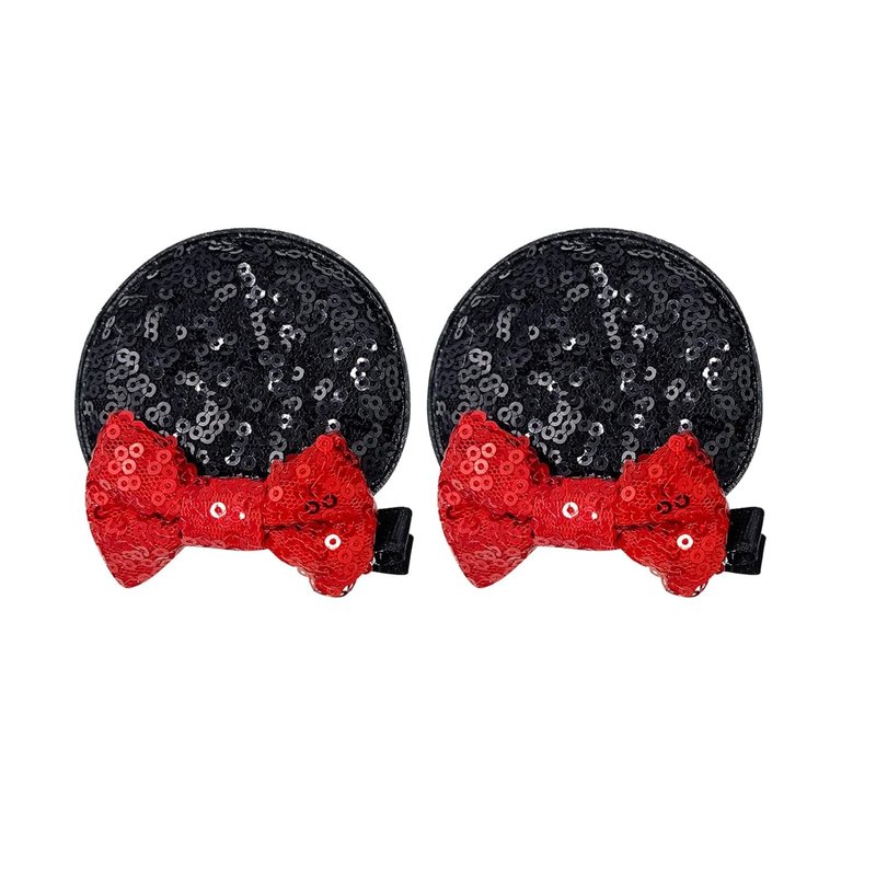 Black and Red Sequin Bow Mouse Ears Hair Clips ...