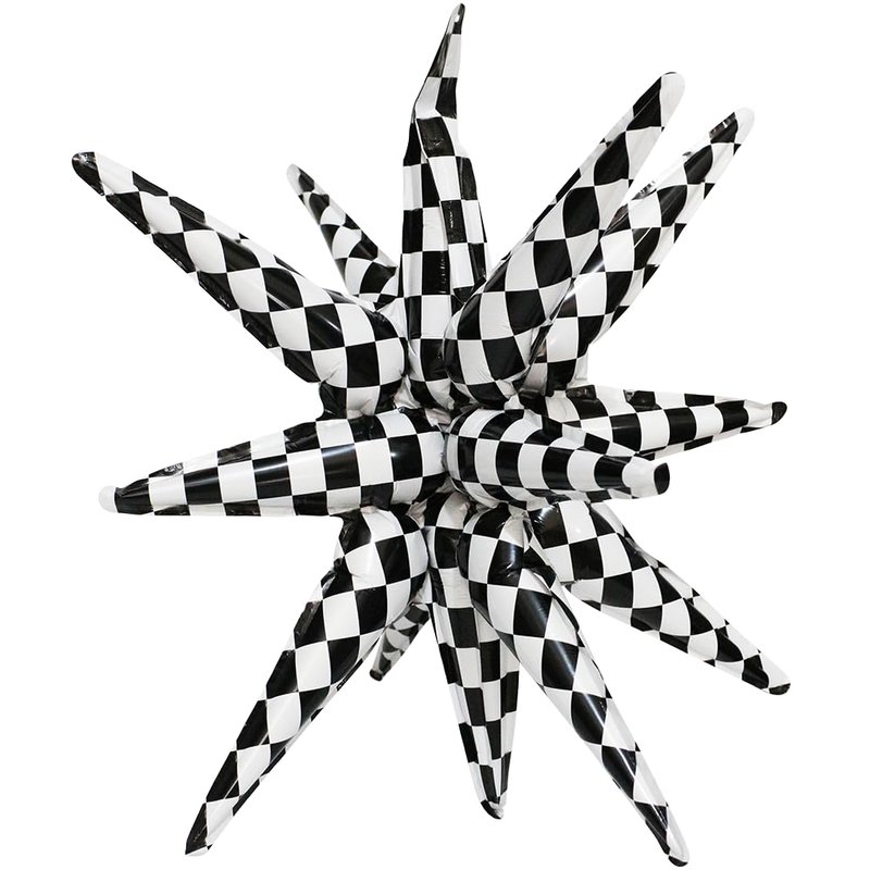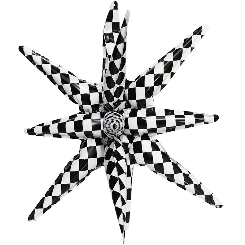 Take one Hokilands 14-pointed star explosion balloon black and white checkered racing decoration, enjoy endless fun from parties & any events, let it become more alive.