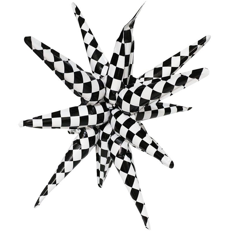 Hokilands 4D Black White Checkered Explosion Star Balloon 14-Pointed One-Piece Star Cone Balloons Kit create one new spiky star balloon for adults, kids, boys, girls and all ages.