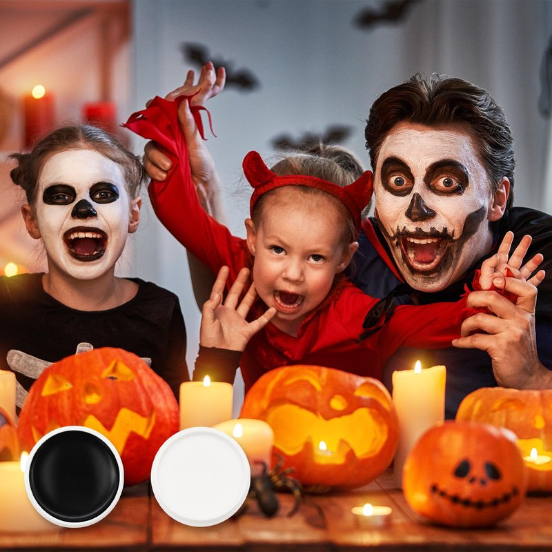 - White and Black Face Paint - Our super smooth and ultra-white cream provides efficient coverage without drying out or cracking. It is the go-to option for long-lasting professional foundation in various FX makeup looks. When combined with black face paint, it is especially suitable for creating makeup styles such as clowns, jokers, vampires, zombies, skeletons, spiderwebs, and ghostly appearances.