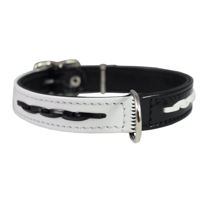 Black and White Genuine Leather Designer Dog Collar with Braids (10"-12" Neck)