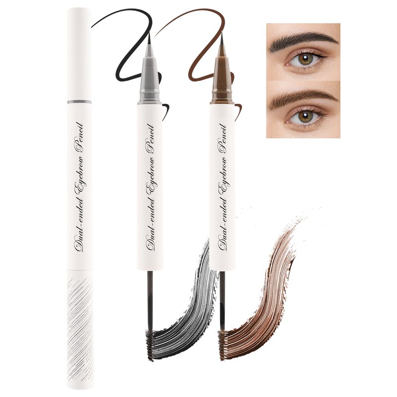 - DOUBLE HEADED BROW PENCIL AND GEL - This 2-in-1 eyebrow pencil and brow gel features a thin tip pencil that outlines and fills brows with precision, effortlessly creating hair-like strokes. The waterproof brow tinted gel side can volumize your brows, intensify brow color for defining and keeping neatly your brows with a bold brow look all day long.
