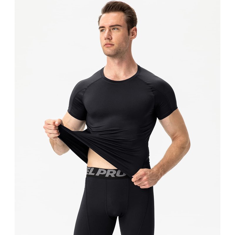 Black Compression Shirts Men Short Sleeve Workout Gym T-Shirt Running Tops Cool Dry Sports Base Layer Undershirts