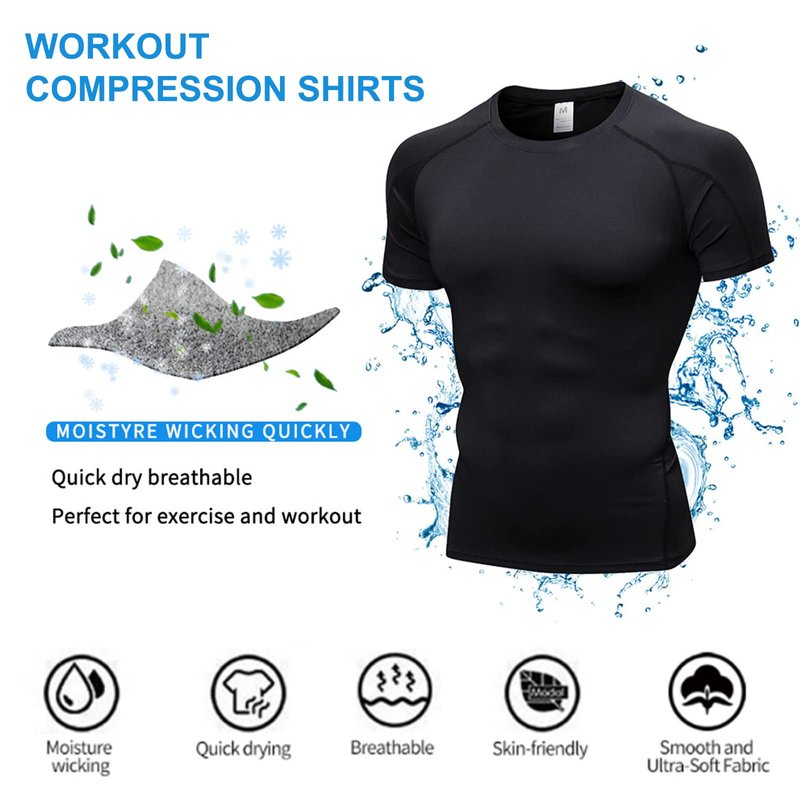 - ➤【Dry-Fit Shirts for Men】: Our short sleeve compression shirt men is made of ultra soft, breathable and sweat-wicking 4-way stretch superior quality fabric, enable sweat easy for air-dry to prevent clothes sticking to the body. Excellent elasticity and durability shirts are great for all day wear.
