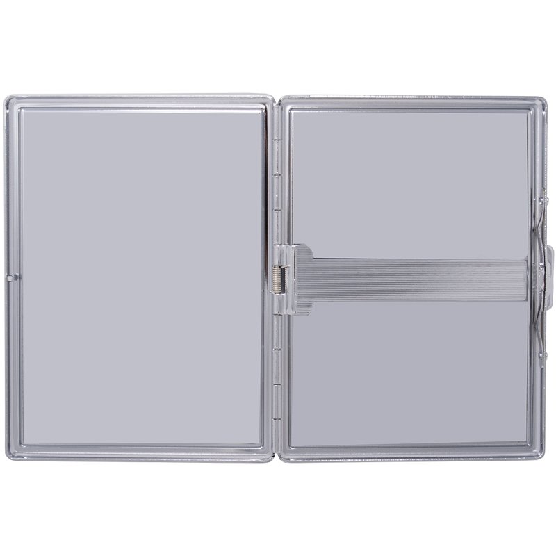 Featuring a classic crocodile print embossed on genuine leather, this metallic cigarette case is sturdy, corrosion resistant and will last you for years to come. Measuring 3" X 4.25", this compact case can accommodate 9 100s or Regular size cigarettes. Crush-proof, this cigarette case features a clip to secure your cigarettes and other smoking accessories. Extra sturdy hinges and a release button on the front ensure that your contents will remain safe and never get crushed. With both sides covered in leather, this case can comfortably slip into your pocket or bag. Great for credit cards, driver’s license, ID cards, cash and all types of smoking accessories. Looking for something else? We offer our cases in several sizes: From a regular sized cigarette case that accommodates a full pack to slightly smaller 16-count pack, a compact half-pack size and an ultra-compact size. We have cigarette cases for Regular Size, King Size, 100s and 120s and in both metallic and leather finishes. Don’t want to deal with clips? We also sell cigarette cases with elastic bands. Please see our other cigarette case listings for more options.