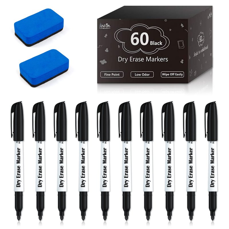 - Lineon 60 bluk pack black dry erase markers, all with black ink.