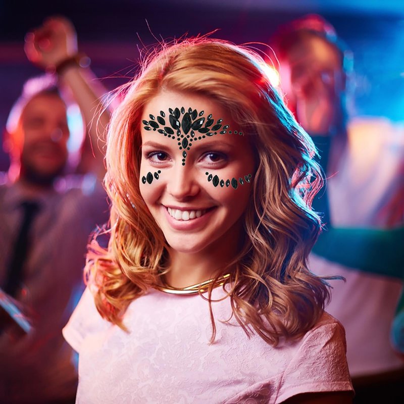 - Stunning Black Design: The black rhinestone face stickers offer a bold and striking look, perfect for adding an edgy touch to your party or event attire.