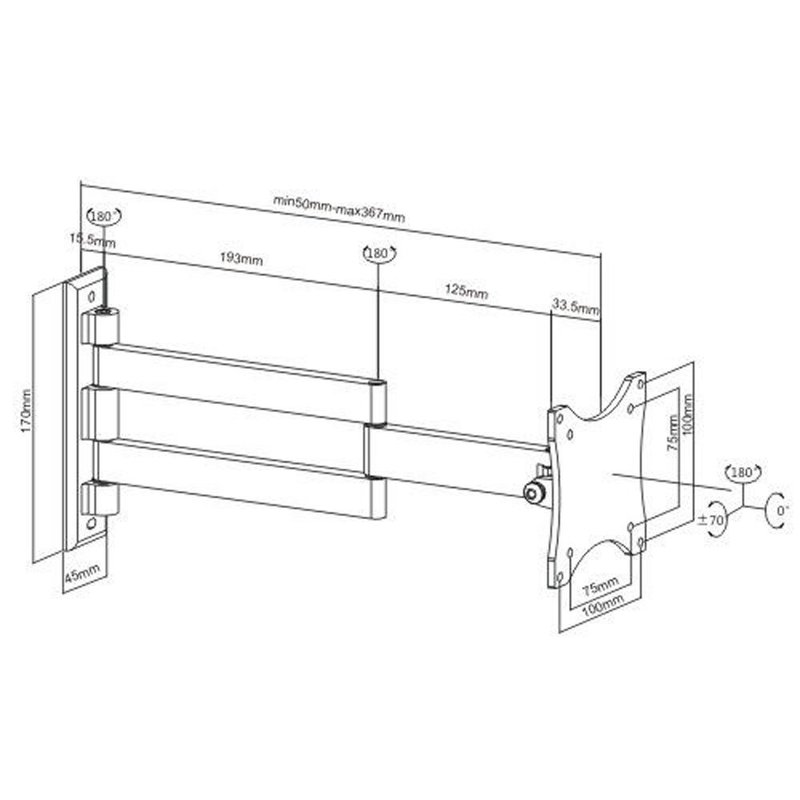 Compatible with the Curtis PLCD2401A 24" inch LCD HDTV TV/Television, this adjustable full-motion tilt/swivel black wall mount bracket puts the back of your TV 2" inches (50mm) from the wall when folded flat and 14.6" inches (370mm) when fully extended. This Full-Motion Wall Mount supports most* 10" to 27" LED/LCD/Plasma TVs weighing up to 33 lbs and features a 70 Degree continous tilt that alows easy viewing from any angle. Its simple to align single bracket makes installation quick and easy and it can be mounted to a variety of wall constructions including wood stud, solid block, or concrete. It is constructed of toughened steel with a durable scratch resistant black finish and comes with all mounting hardware and simple to follow installation instructions. *Mounting holes on television should be 75 x 75mm (3" x 3") or 100 x 100mm (3.9" x 3.9").
