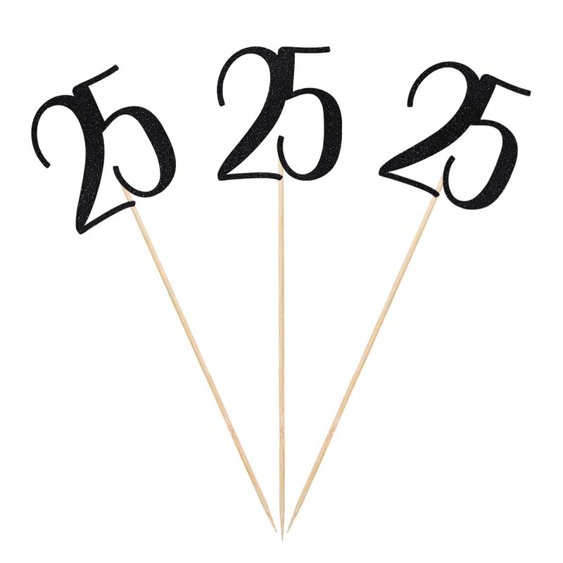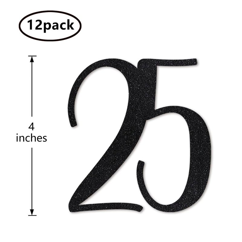 Black Glitter 25th Birthday Centerpiece Sticks, 12-Pack Number 25 Table Topper Anniversary Party Decorations