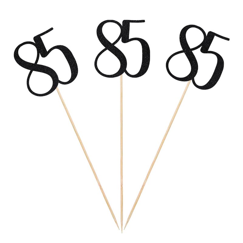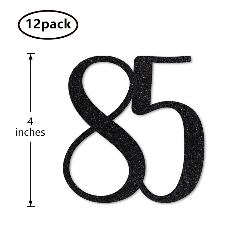 Black Glitter 85th Birthday Centerpiece Sticks, 12-Pack Number 85 Table Topper Anniversary Party Decorations