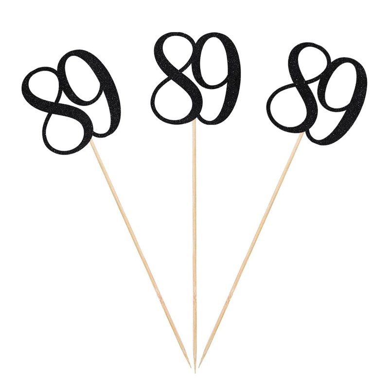 Black Glitter 89th Birthday Centerpiece Sticks, 12-Pack Number 89 Table Topper Anniversary Party Decorations