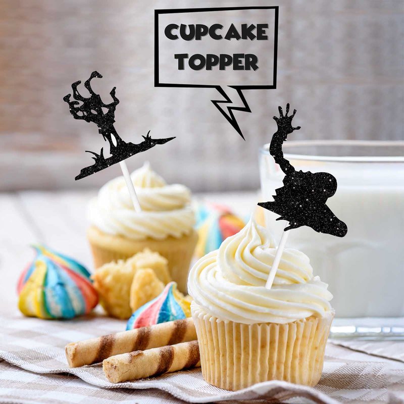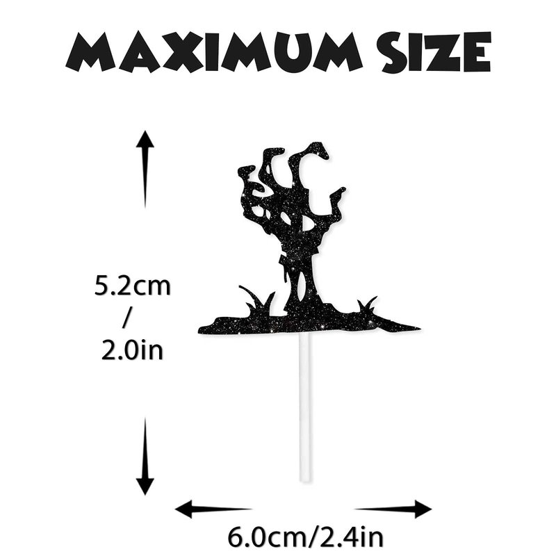 Black Glitter Halloween Zombie Dessert Cupcake Topper Fantasy Horror Theme Decor Supplies Boys Girls Woman Man Happy Birthday Party Decorations