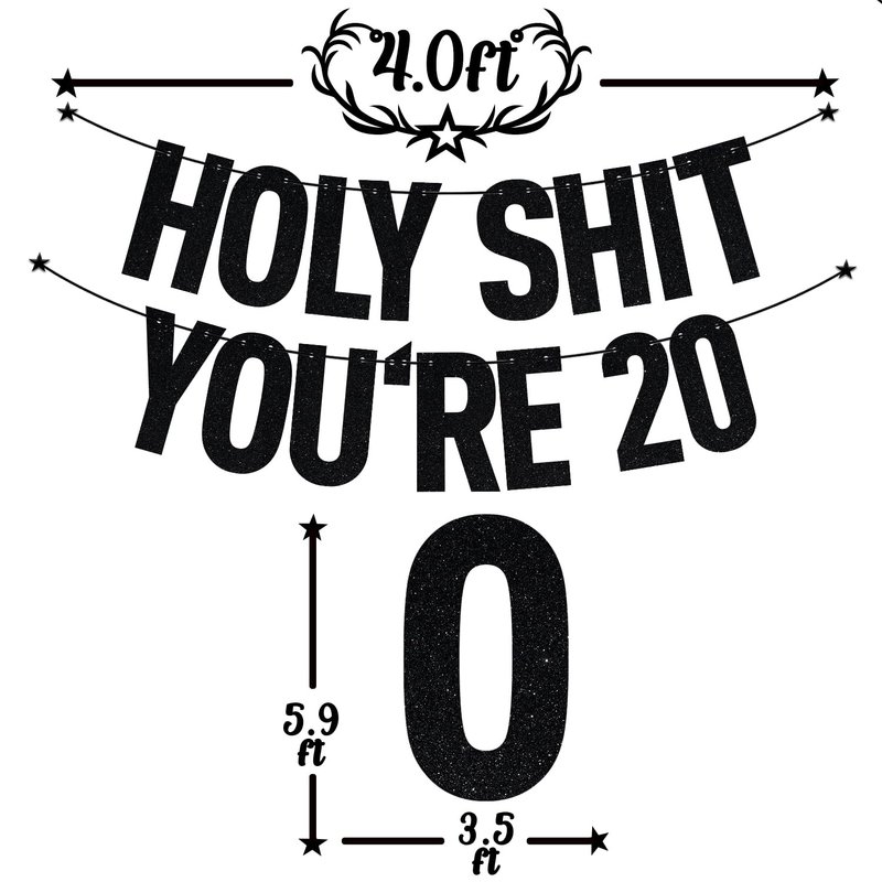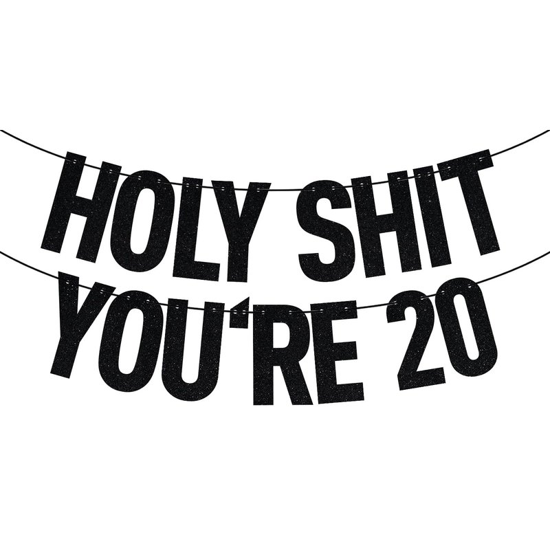 Black Glitter Holy Shit You're 20 Banner, Happy 20th Birthday/Cheers to 20 Years, 20th Birthday Party Decorations Supplies