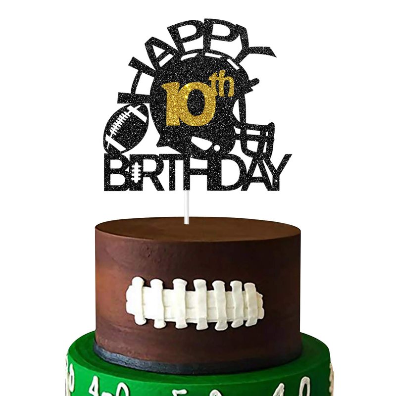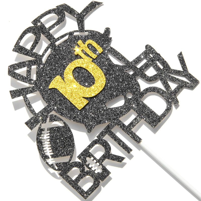 Black & Gold Glitter Football Happy 10th Birthday Cake Topper, Football 10th Birthday Party Decoration, Football Theme Happy 10th Birthday Party Supplies (10th)