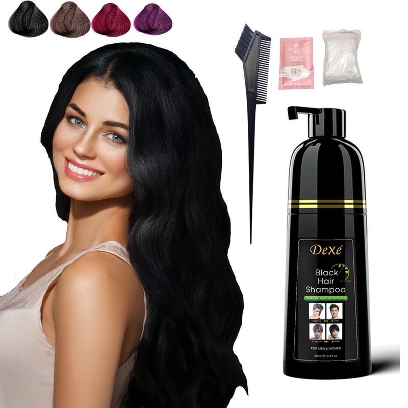 - All in 1 Economical 500ml Hair Color Kit: Easy to use hair dye is perfect for daily use, festivals, parties. It includes 1 bottle of Easy Hair Color Comb, 1 pack herbal moisturizing black hair shampoo, hairdressing clip, hair color comb brush, salon professional gloves, earmuffs, raincoat, bath cap