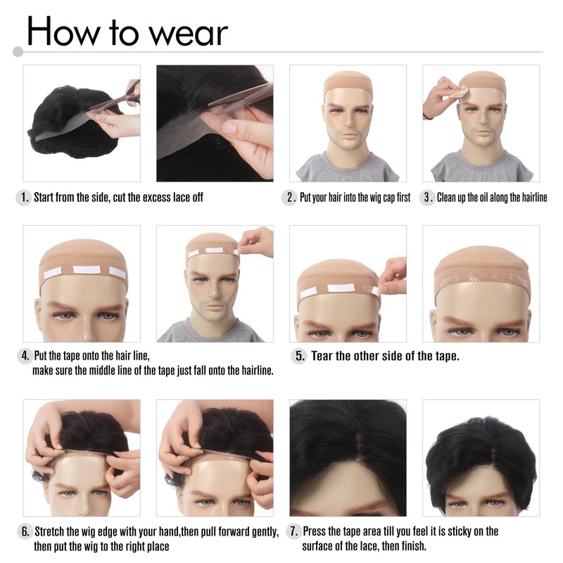 - T Part Lace & Breathable Rose Net - This men short lace front wig fit for most head sizes and shapes. Lace Size 6"X4"X0.5",The Three Combs on the Cap can make the hair net safer and more durable.You can loosen or tighten the wig to reach a most comfortable condition.