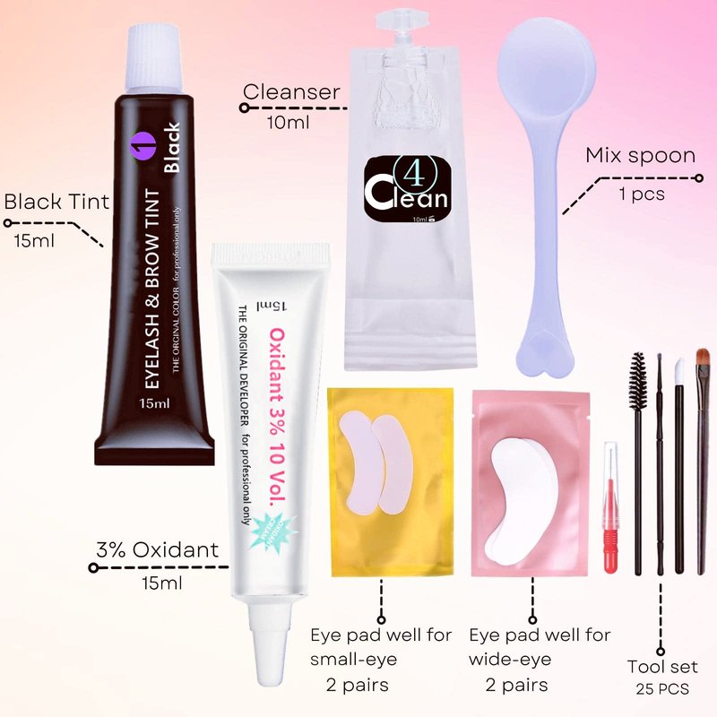 - Complete Black Lash Coloring Starter Kit-- Professional Usage or Make up at home includes: Black Coloring Cream , Developer-Oxidant 3% (10 VOL)1.7oz, Mixing Brushes and Dish tool