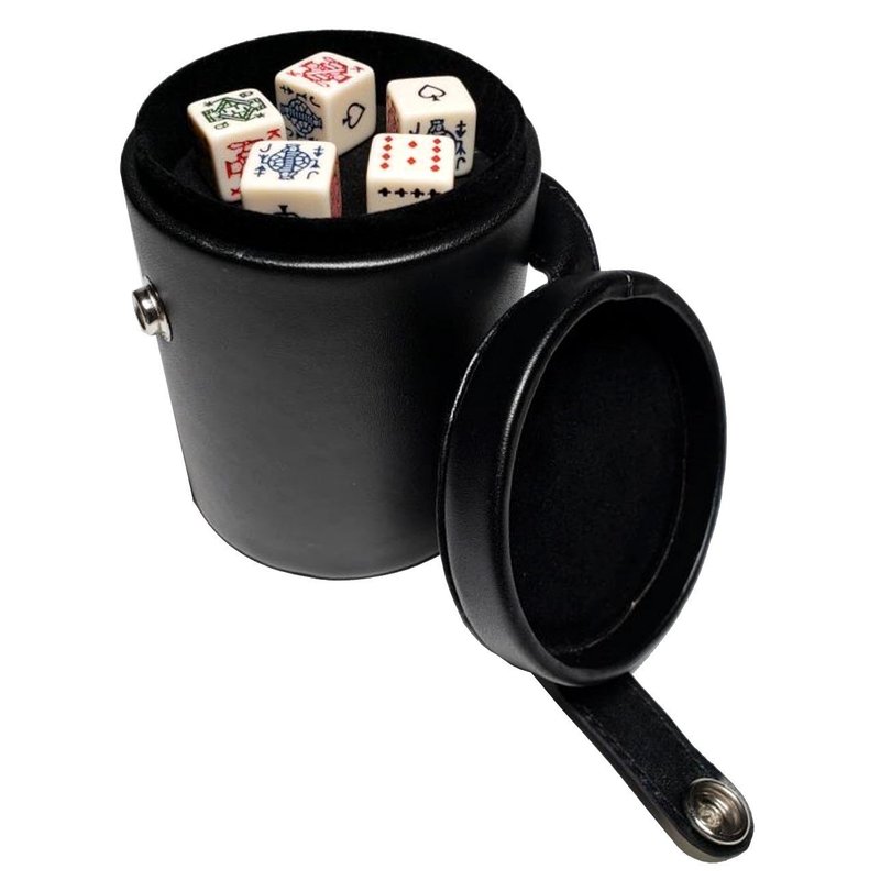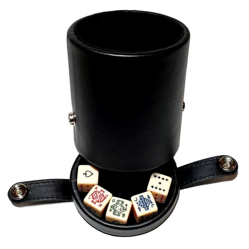 Black Leatherette Deluxe Dice Cup With Storage Compartment for Included Poker Dice Set