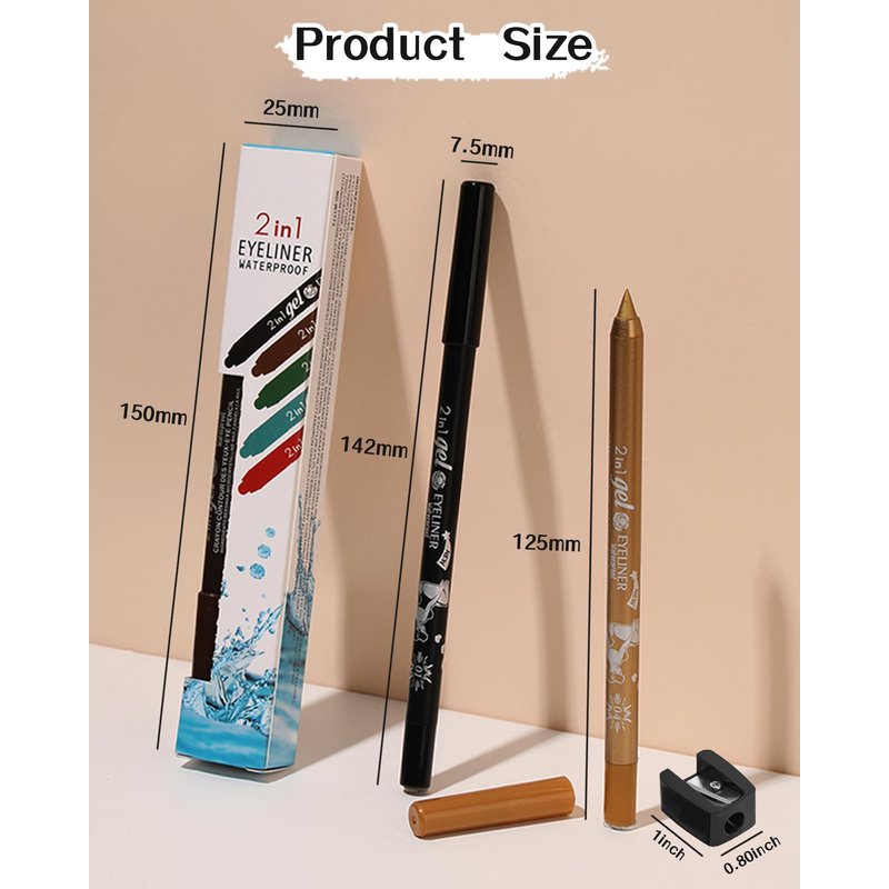 - Colourful Gel Eyeliner Pencils Set - Eight colors of eyeliner gel pencils, including pearl and matte. We offer you a two-pack of popular colors, a three-pack of combinations to match, and a pencil roller of your choice. You can use the eyeliner gel pens to enhance the dimension and glamour of your eyes, creating more varied and personalized makeup effects to meet the needs of different occasions and personal preferences.